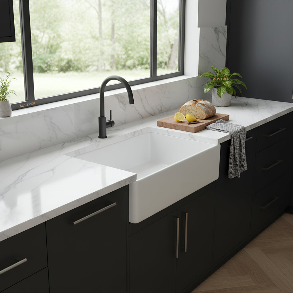Transform your bathroom with the Poseidon Undermount Kitchen Sink in Matte White (838mm). This collection offers a perfect blend of style and practicality, available in various sizes and colors to suit your taste. Enjoy peace of mind with a 5-year warranty, ensuring enduring quality and a replacement sink option. Elevate your space with Poseidon where sophistication meets durability, delivering a statement piece that enhances your bathroom aesthetics and stands the test of time with timeless elegance.