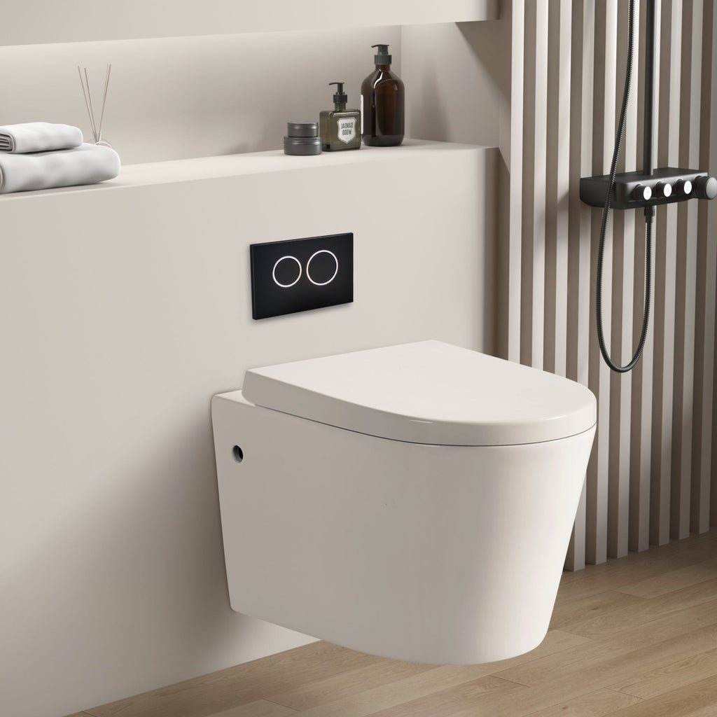 Elevate your bathroom with the Poseidon Avis Rimless Wall Hung Pan, a sleek choice for modern spaces. Available in Gloss White, Matte White and Matte Black finishes this 520mm pan offers a clean and contemporary look. Designed for use with R&T or Geberit cisterns and push plates, it provides versatility in installation. It features a 4.5/3 liters dual flush system for water efficiency. The Avis Rimless design and UF Slim Seat SC074 combine to offer comfort. Enjoy 1-year warranty on replacement parts or product.