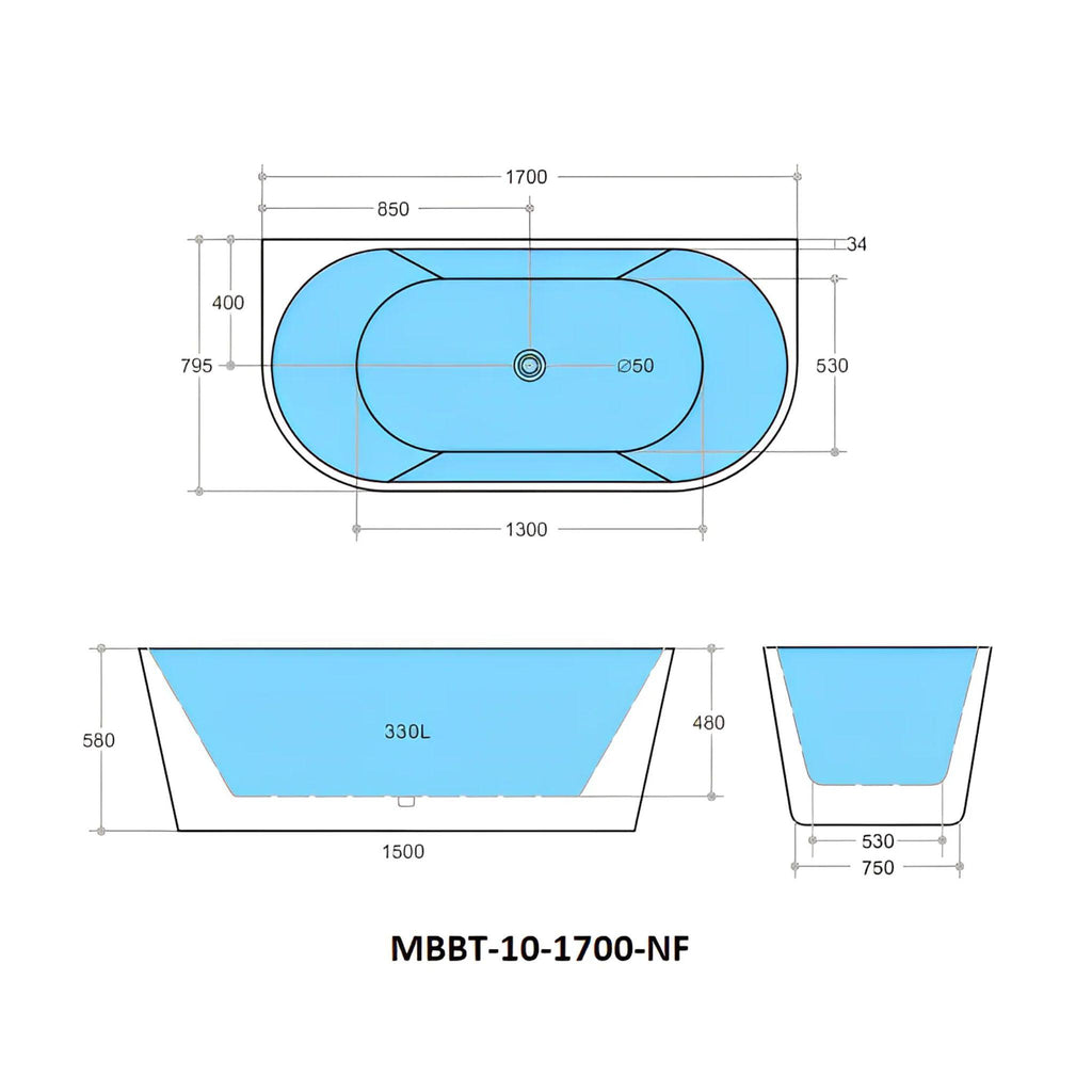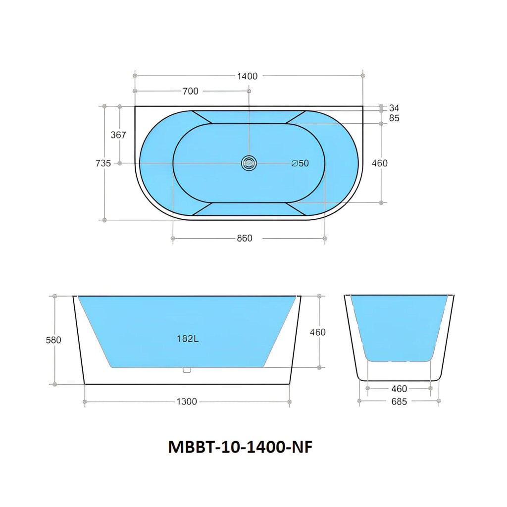 POSEIDON ELIVIA BACK TO WALL BATHTUB MATTE BLACK AND MATTE WHITE (AVAILABLE IN 1400MM, 1500MM AND 1700MM)