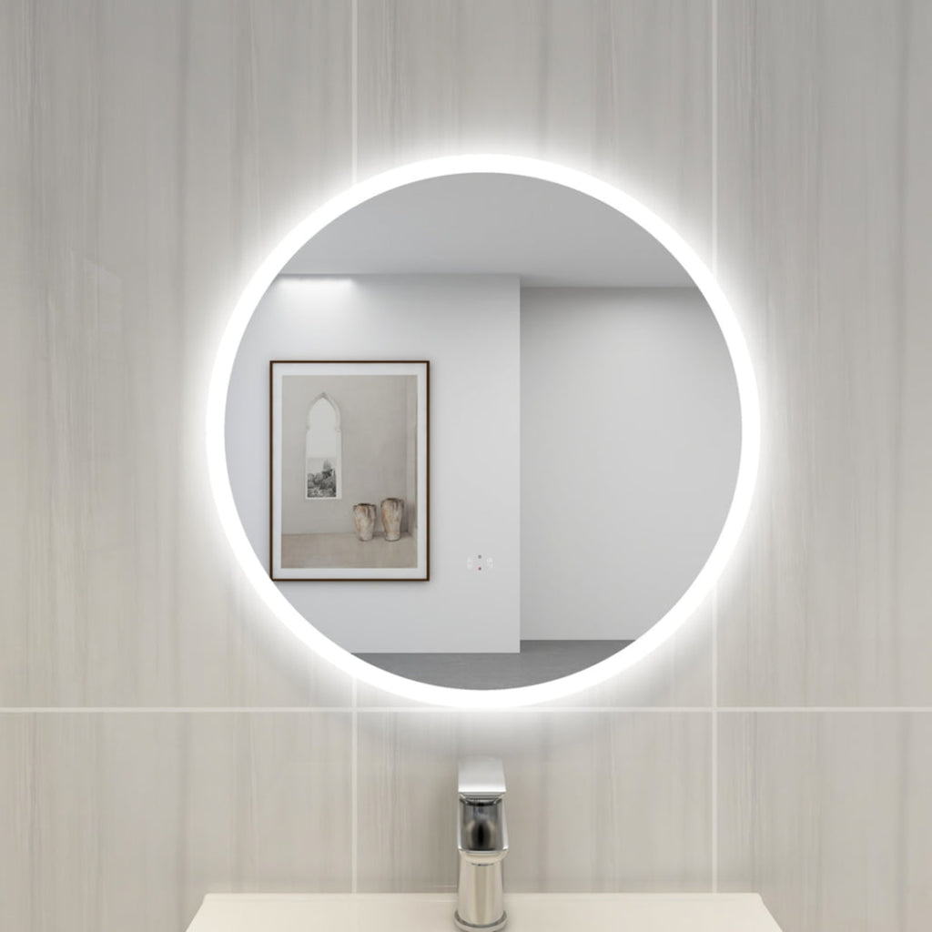POSEIDON ACRYLIC ROUND BACKLIT LED MIRROR 3 COLOUR LIGHTS 600X600M