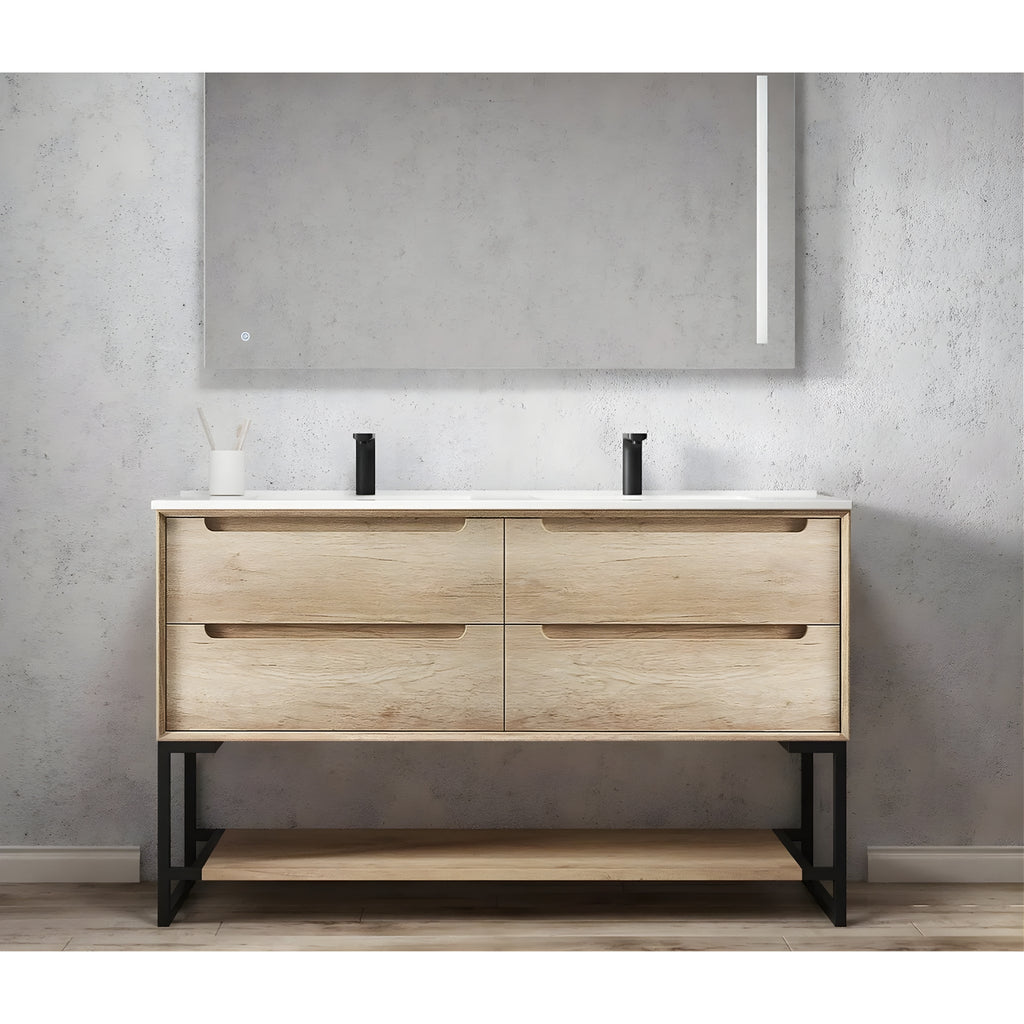 OTTI BYRON NATURAL OAK 1500MM DOUBLE BOWL FLOOR STANDING VANITY