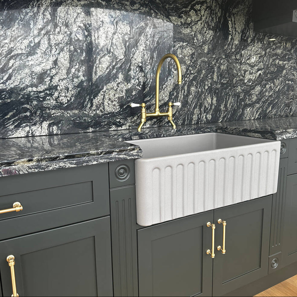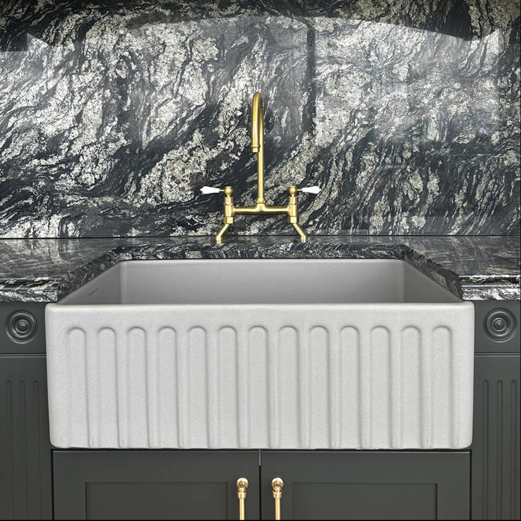 The Turner Hastings Ludlow Bridge Sink Mixer Tap, with a length of 400mm in brushed brass, elegantly bridges traditional style and modern functionality. Crafted in Italy and designed in England, it features twin white lever handles and a swivel spout, enhancing both ease of use and aesthetic appeal. Made from durable brass, this mixer tap suits any classic kitchen design. It comes with a generous 15-year warranty on the body and handle, and a 5-year warranty on the spindles and finish.