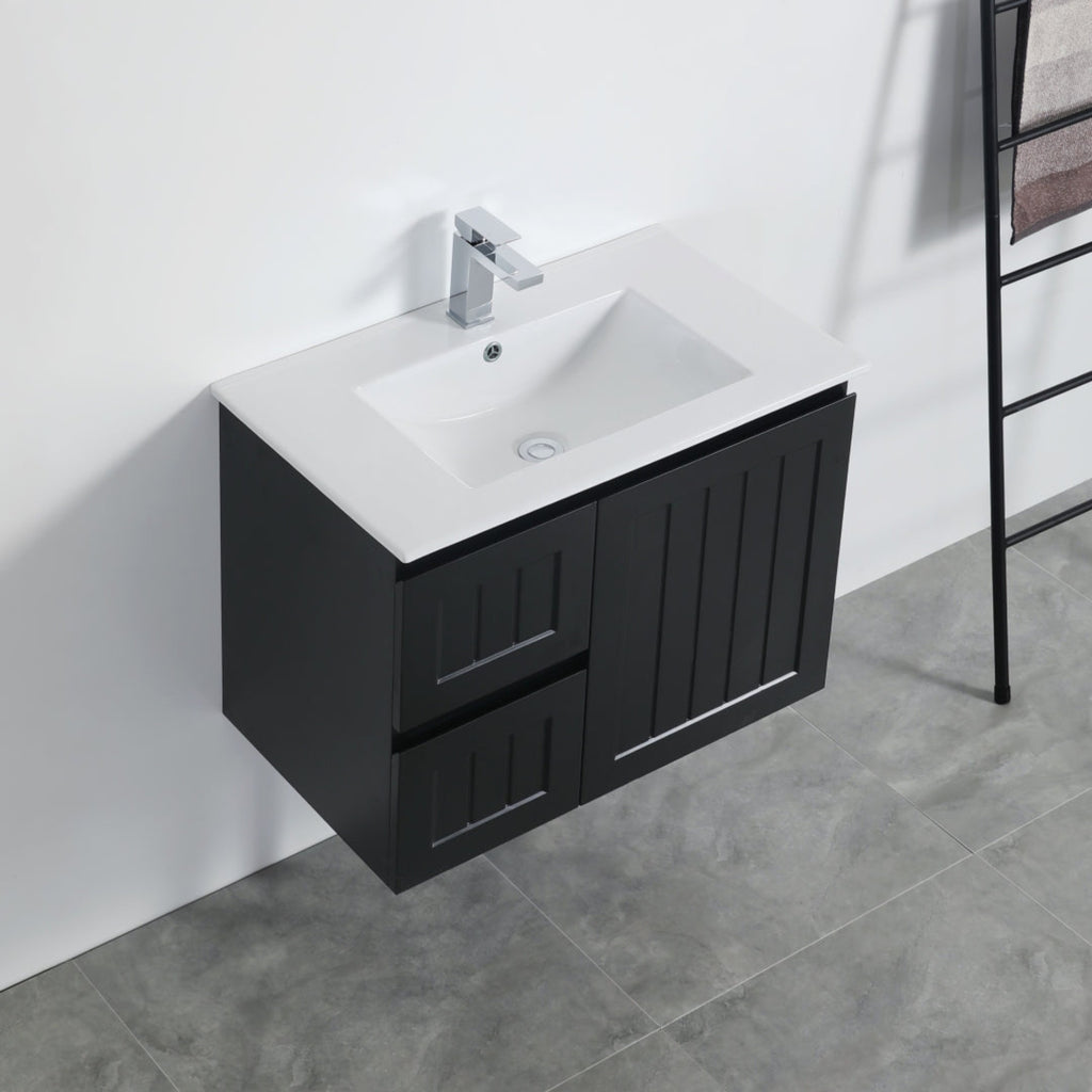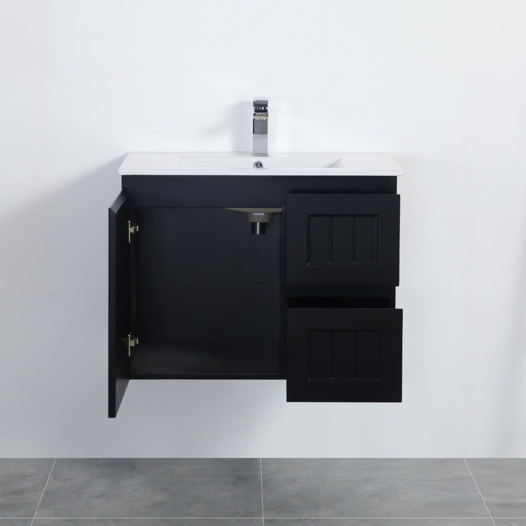 CETO ACACIA SHAKER MATTE BLACK 750MM SINGLE BOWL WALL HUNG VANITY (AVAILABLE IN LEFT AND RIGHT HAND DRAWER)