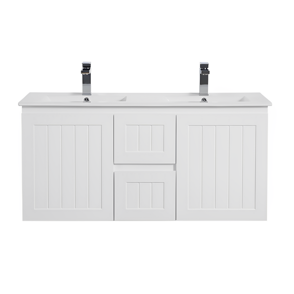 CETO ACACIA SHAKER MATTE WHITE 1200MM DOUBLE BOWL WALL HUNG VANITY
