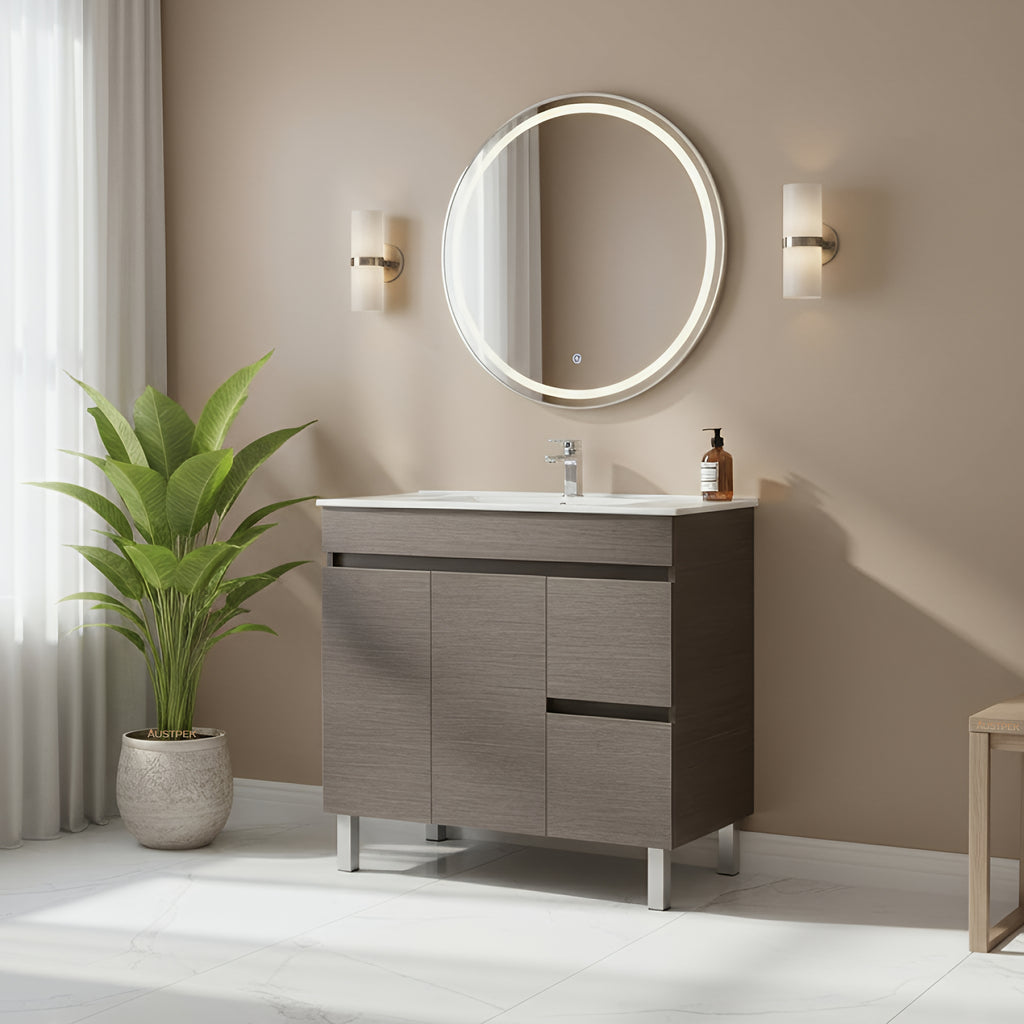 POSEIDON EVIE DARK BROWN 900MM FLOOR STANDING VANITY (AVAILABLE IN LEFT HAND DRAWER AND RIGHT HAND DRAWER)