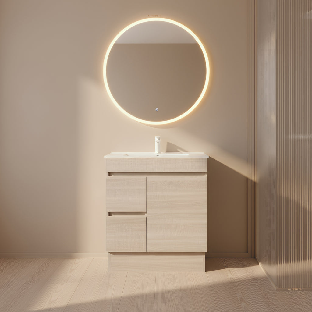 POSEIDON EVIE OAK 750MM SINGLE BOWL FLOOR STANDING VANITY (AVAILABLE IN LEFT HAND DRAWER AND RIGHT HAND DRAWER)