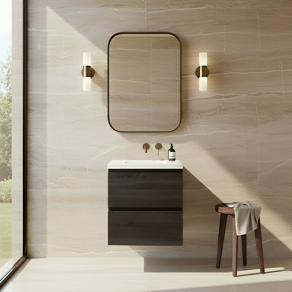 Discover the sophistication of the Poseidon Wall Hung Vanity. Embodying elegance in a rich Dark Grey hue, its compact 600mm design is also adaptable up to 750mm, 900mm, 1200mm and 1500mm. Beyond beauty, it's functional with a soft-closing double drawer, meticulously crafted from Dark Grey Wood Grain PVC Vacuum Filmed MDF Board. This standard-size vanity can be further personalized with vanity top choices. With steadfast PVC construction, enjoy peace of mind with a comprehensive warranty.