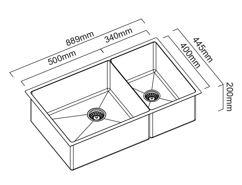 - Overall Sink Size: 889mm X 445mm X 200mm