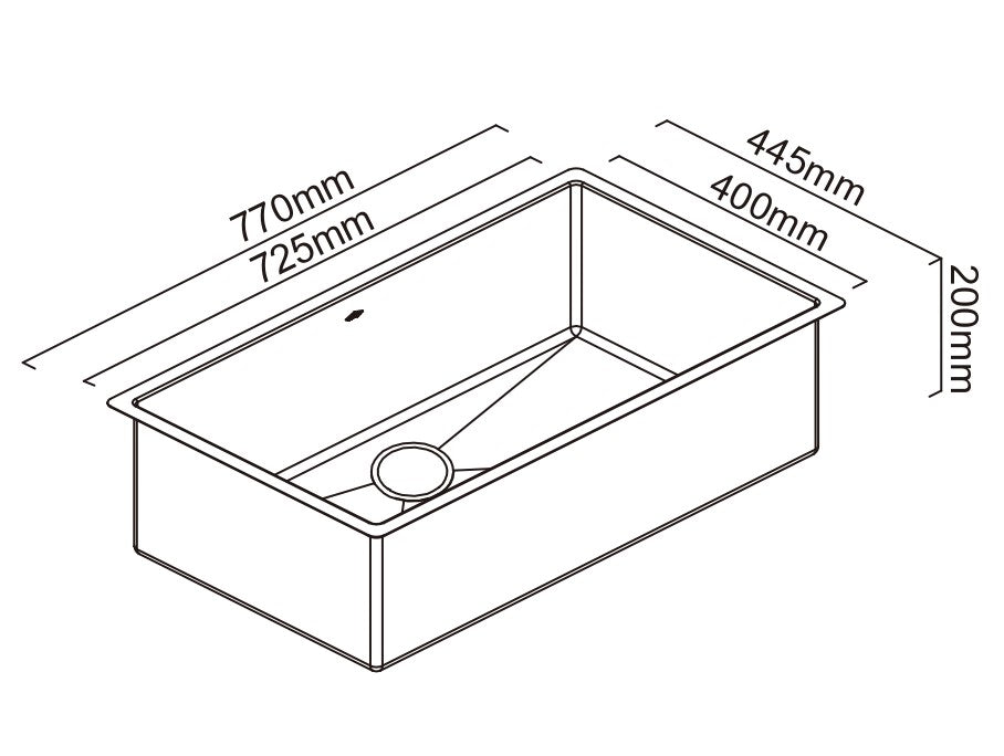 - Overall Sink Size: 770mm X 445mm X 200mm