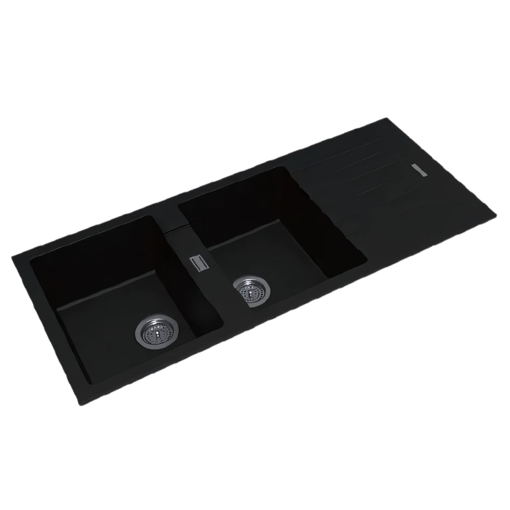 AQUAPERLA QUARTZ DOUBLE BOWL DRAINBOARD GRANITE KITCHEN SINK BLACK 1160MM