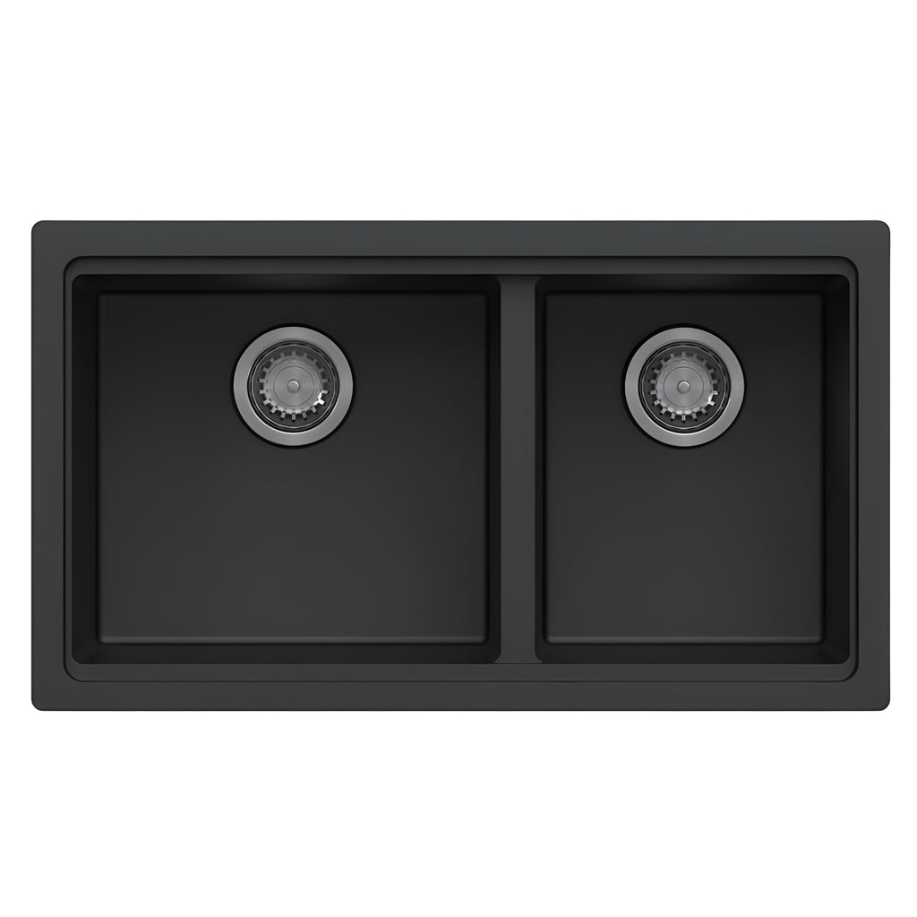 AQUAPERLA CARYSIL MAPLES GRANITE DOUBLE BOWL KITCHEN SINK BLACK 786MM