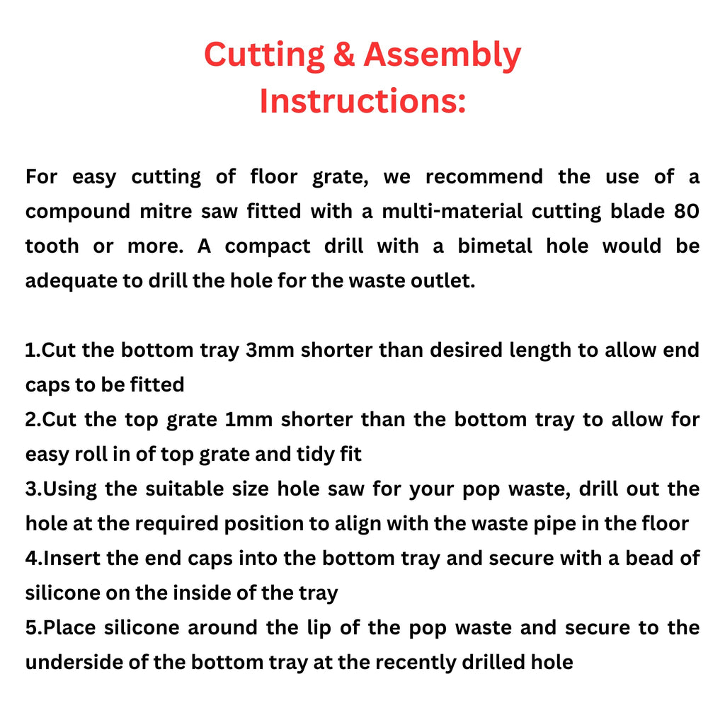 NOTE: Our 'Lauxes' shower grates are 'custom cut' to size. As a 'Special Customer' order, item's cannot be returned once they are cut to your specified size unless there is a manufacturer's fault, defect or stock arrives damaged. It is important to confirm size before placing your order.