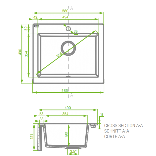 AQUAPERLA LAVEO UNDERMOUNT SINGLE BOWL SINK BEIGE GRANITE 490MM
