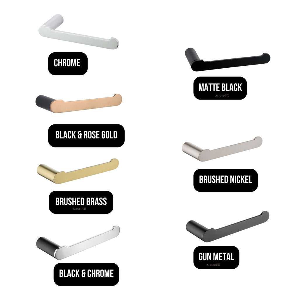 Aquaperla Rushy Toilet Paper Holder 170mm in Black and Rose Gold combines modern elegance with functionality. Made from durable 304 stainless steel, it features advanced rust-proofing and a stylish design that enhances any bathroom while conforming to Australian standards. Measuring 170mm, it is easy to install and adds sophistication to your space. Also available in Black, Black and Chrome, Brushed Brass, Brushed Nickel, Gun Metal, and Chrome. Backed by a 5-year domestic and 1-year commercial warranty.