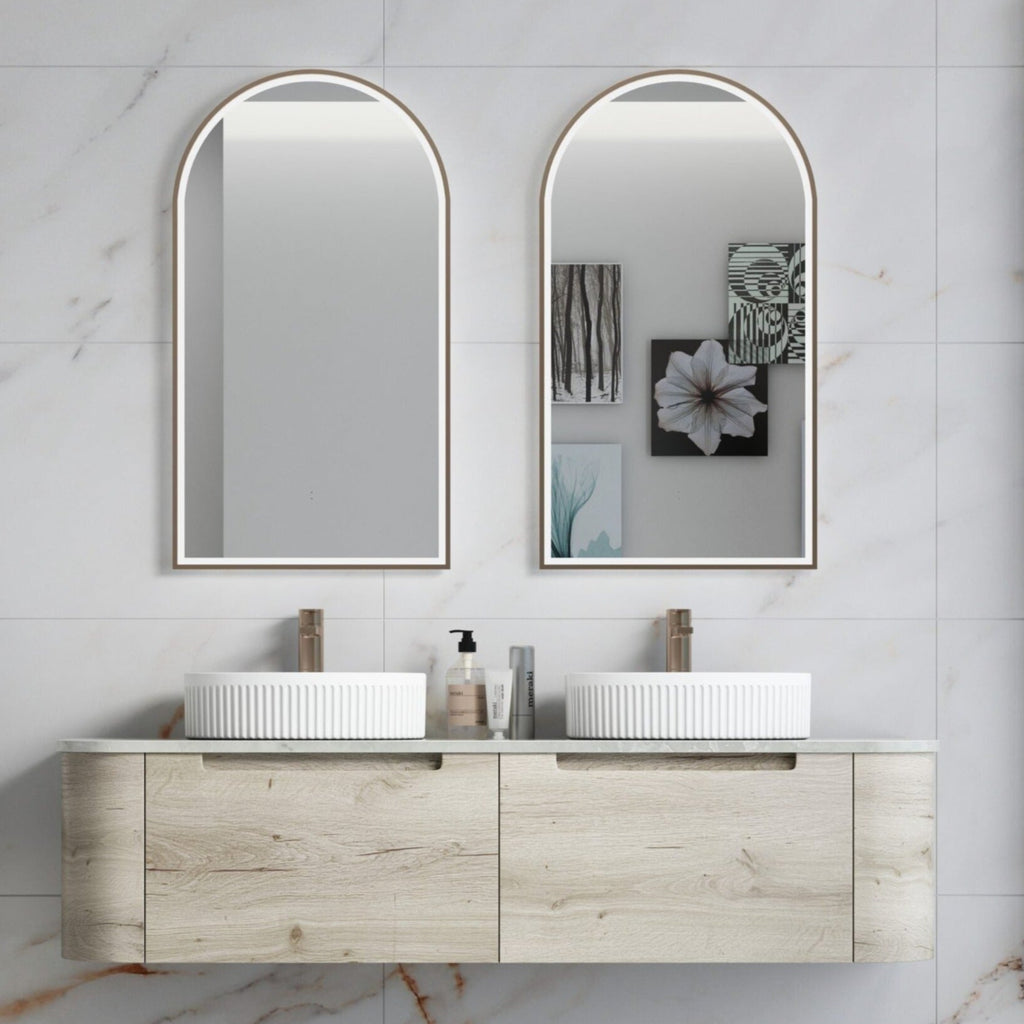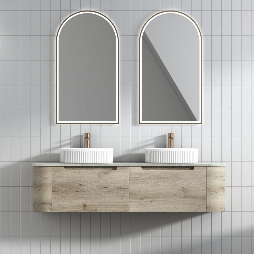 AULIC HAMILTON WHITE OAK 1500MM DOUBLE BOWL WALL HUNG VANITY W/ GERMAN HETTICH RUNNERS