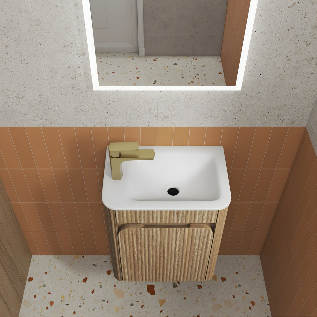 AULIC MINI HARTELLE HARVEST OAK 450MM SPACE SAVING WALL HUNG VANITY