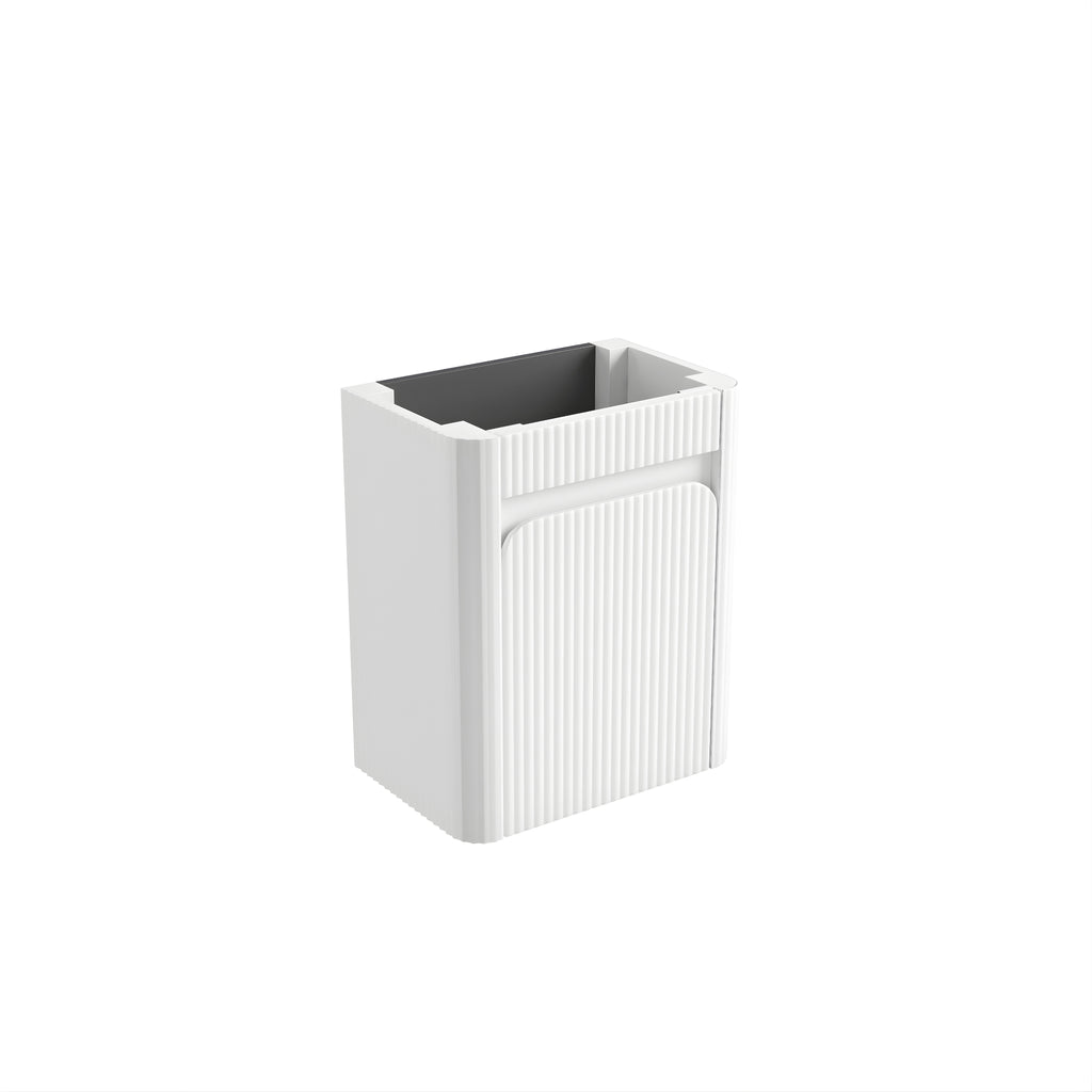 Bring modern minimalism to your bathroom with the Aulic Mini Hartelle Matte White 450mm Space Saving Wall Hung Vanity. Crafted from premium grade, durable timber plywood, this compact vanity features curved feature ends, a contemporary V-groove polyurethane matte white finish, and minimalist finger pull drawers. Its premium graphite interior adds a sophisticated touch. Cabinets come fully assembled. Waste not included. Ideal for powder rooms or small spaces where elegant, space-saving storage is essential.