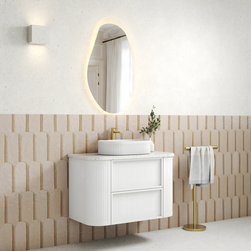 AULIC RAMEE CURVED MATTE WHITE 900MM SINGLE BOWL WALL HUNG VANITY