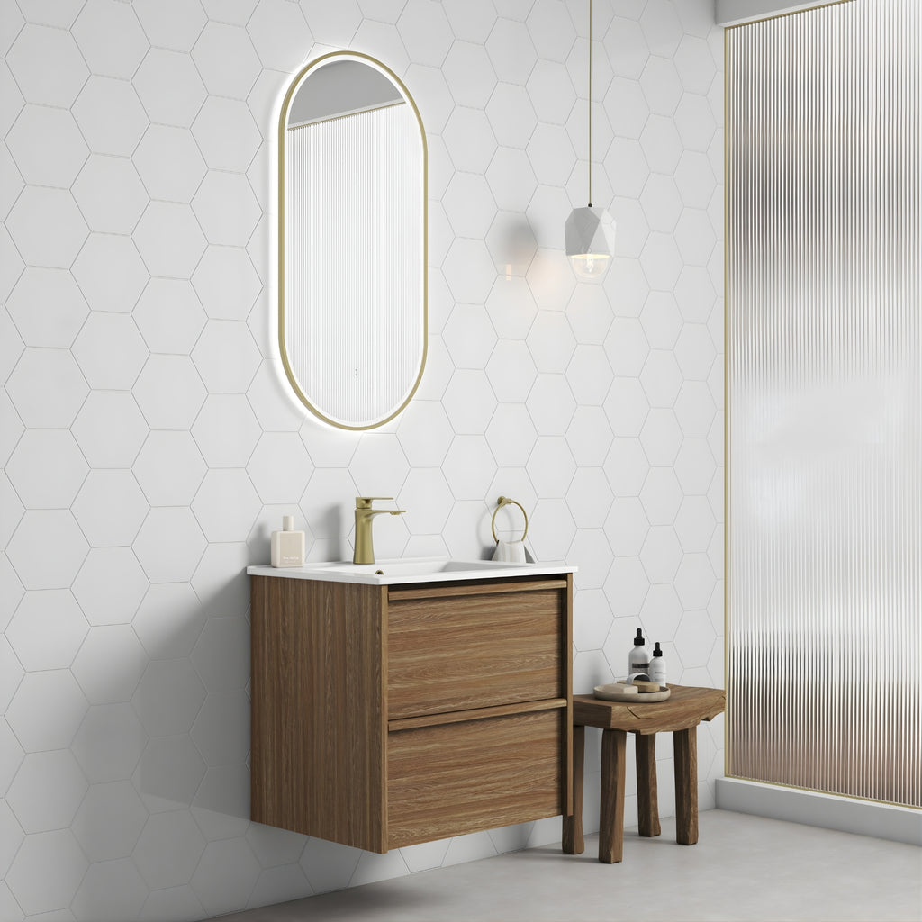 AULIC VENETTA HARVEST OAK 600MM SINGLE BOWL FRAMED WALL HUNG VANITY