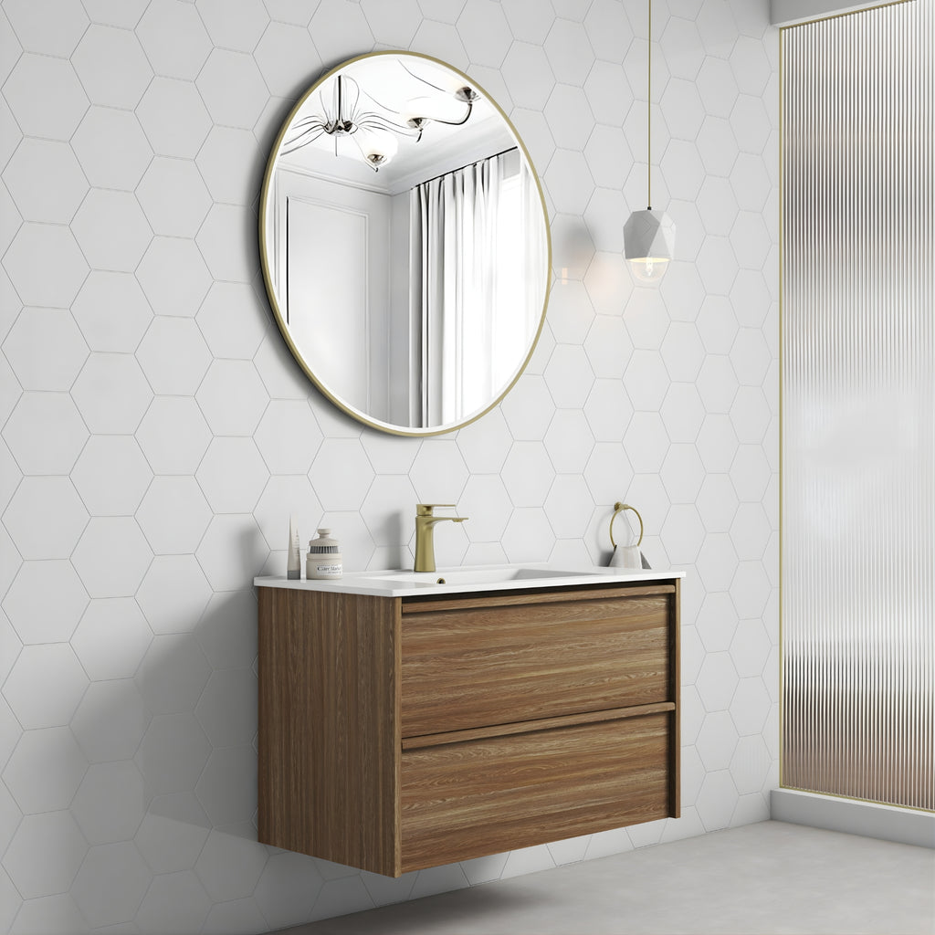 AULIC VENETTA HARVEST OAK 900MM SINGLE BOWL FRAMED WALL HUNG VANITY