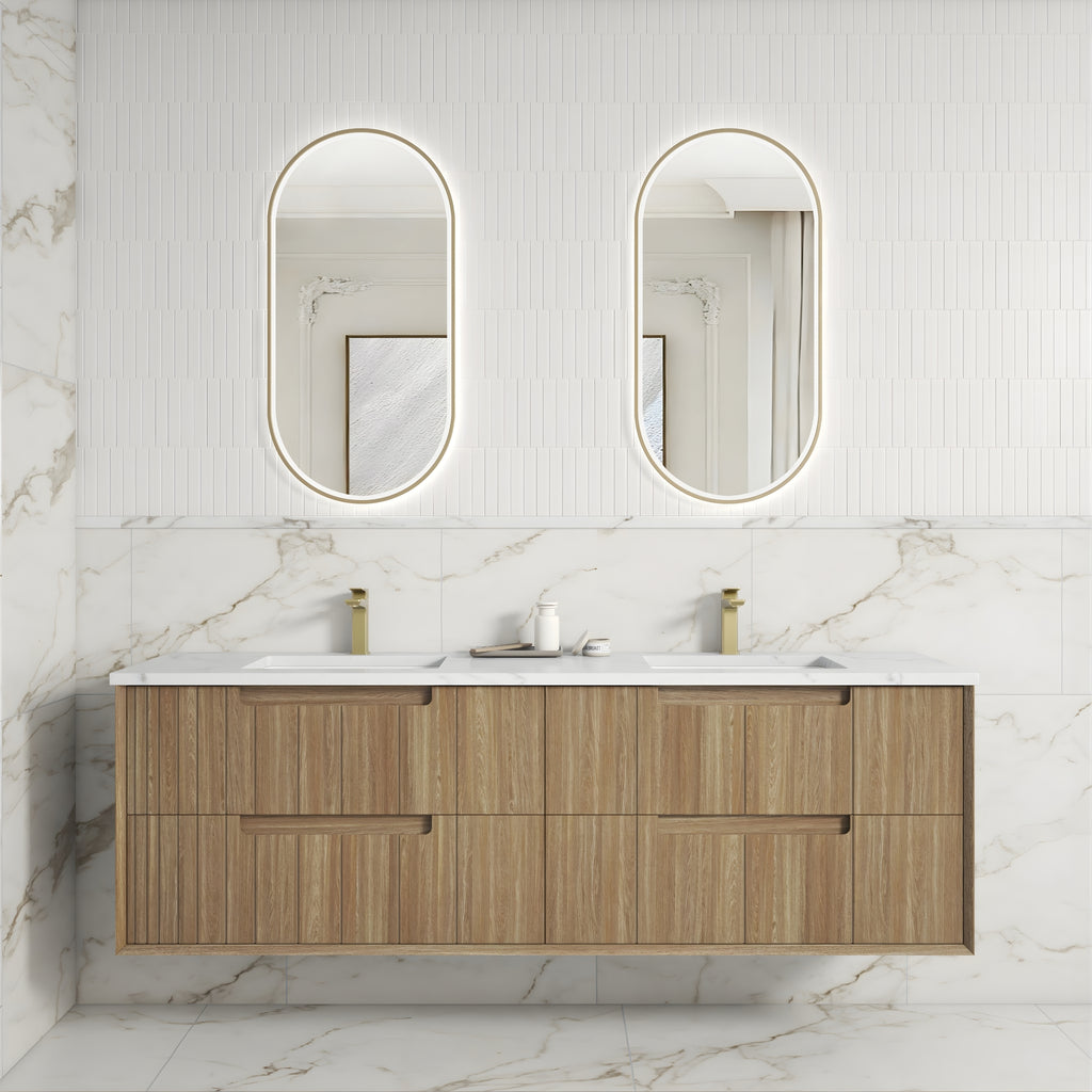 AULIC VOULARI HARVEST OAK 1800MM DOUBLE BOWL FRAMED WALL HUNG VANITY