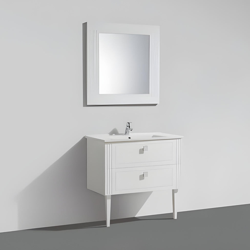 The BelBagno Atria De Luxe back to wall floor standing vanity delivers European style and functionality to contemporary Australian bathrooms. Finished in gloss white, this 1000mm vanity features a durable water-resistant cabinet with lacquer paint finish and a ceramic top with integrated overflow. Designed with a centred single bowl, two soft close drawers on full extension Blum runners and stylish Italian-made metal handles, it arrives fully assembled for easy installation. Also available in gloss black.