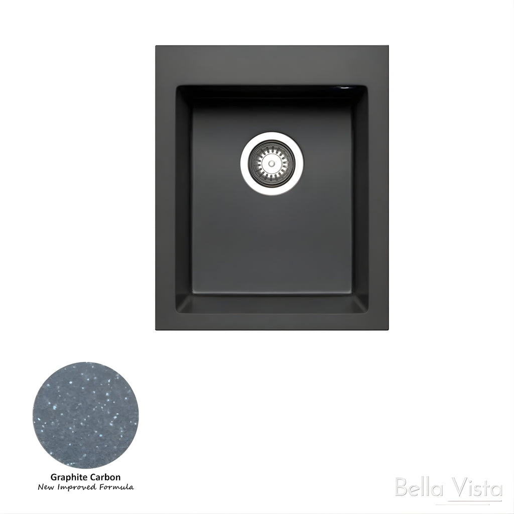 BELLA VISTA PRADUS SINGLE BOWL GRANITE KITCHEN SINK GRAPHITE CARBON 410MM