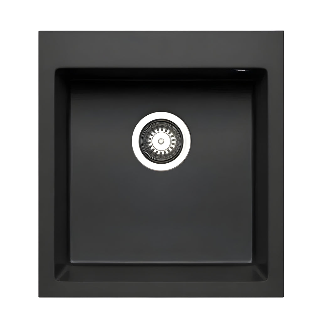 Designed for contemporary bathrooms, the Bella Vista Pradus Single Bowl Granite Sink in Graphite Carbon delivers compact sophistication. Measuring 460mm by 500mm, this granite stone sink features a deep single bowl ideal for handwashing and utility use. With no drainer and no taphole, it suits drop-in or undermount installation for a clean, customised finish. Durable granite construction provides lasting performance, supported by a two-year structural warranty and one-year colour coverage in modern Australian bathroom spaces.