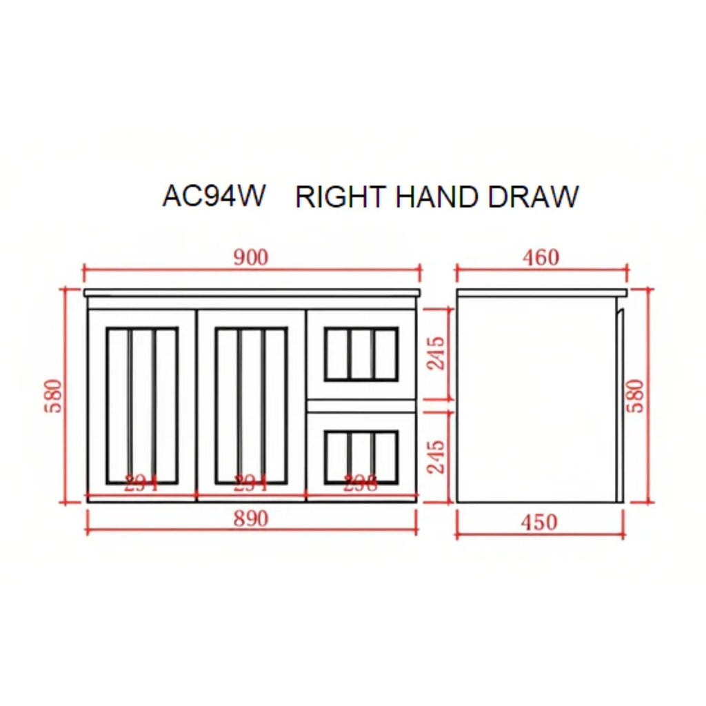 CETO ACACIA SHAKER MATTE WHITE 900MM SINGLE BOWL WALL HUNG VANITY (AVAILABLE IN LEFT AND RIGHT HAND DRAWER)