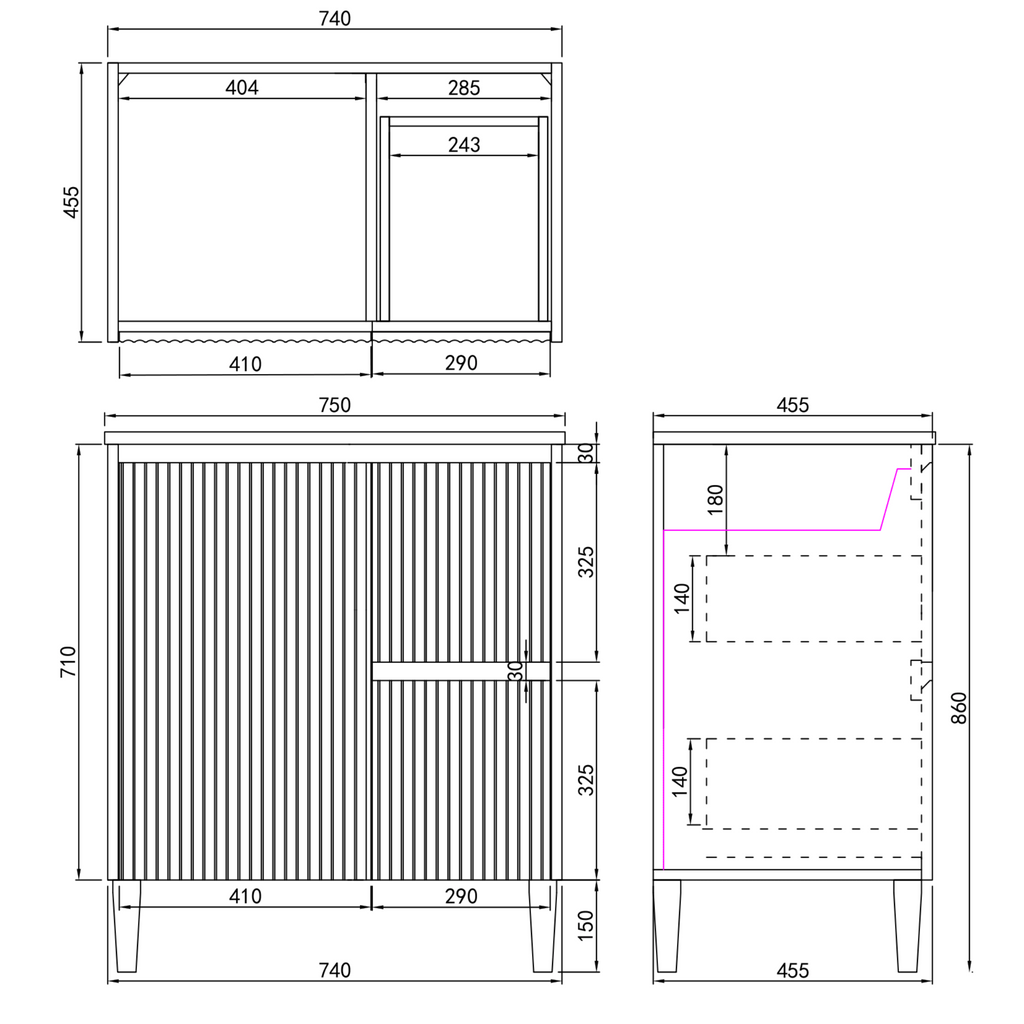 CETO BRIGHTON MATTE WHITE 750MM SINGLE BOWL FLOOR STANDING VANITY (AVAILABLE IN LEFT AND RIGHT HAND DRAWER)