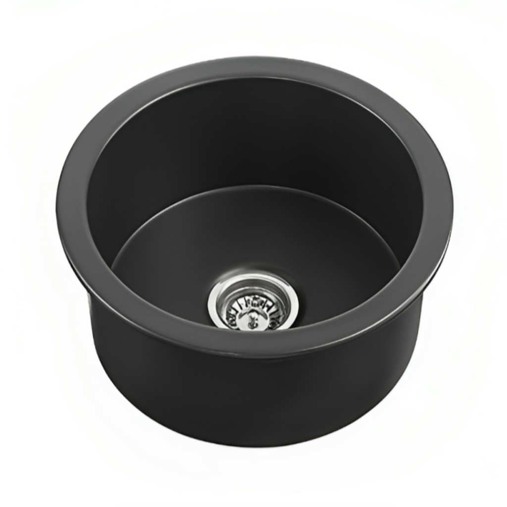 Introducing the Ceto Camden kitchen sink, a round masterpiece sculpted from fine fireclay. Spanning 470mm, it's available in elegant gloss white and matte black finishes. This single bowl design is versatile for both inset and undermount mounting. Beyond its aesthetic appeal, this kitchen sink comes with a bottom grid and chrome basket waste, combining beauty with functionality. Elevate your kitchen space with this fireclay gem.