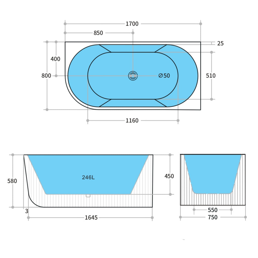 The Ceto Capri Freestanding Right Corner Bathtub in Gloss White offers a stylish solution for space-efficient bathrooms. Available in both 1500mm and 1700mm sizes, it is designed to fit perfectly into a right corner, adding a sleek, modern touch. Made from durable materials, it includes a 5-year replacement warranty for domestic use and a 3-year replacement warranty for commercial use. With its practical design and elegant matte finish, the Capri bathtub enhances both form and function in any space.