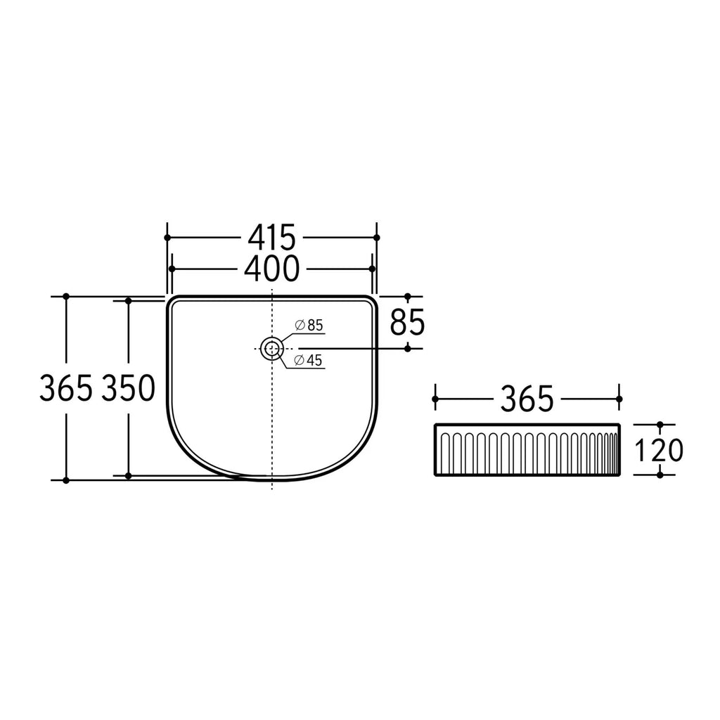 CETO CASCADE FLUTED ARCH ABOVE COUNTER BASIN GLOSS WHITE 415MM