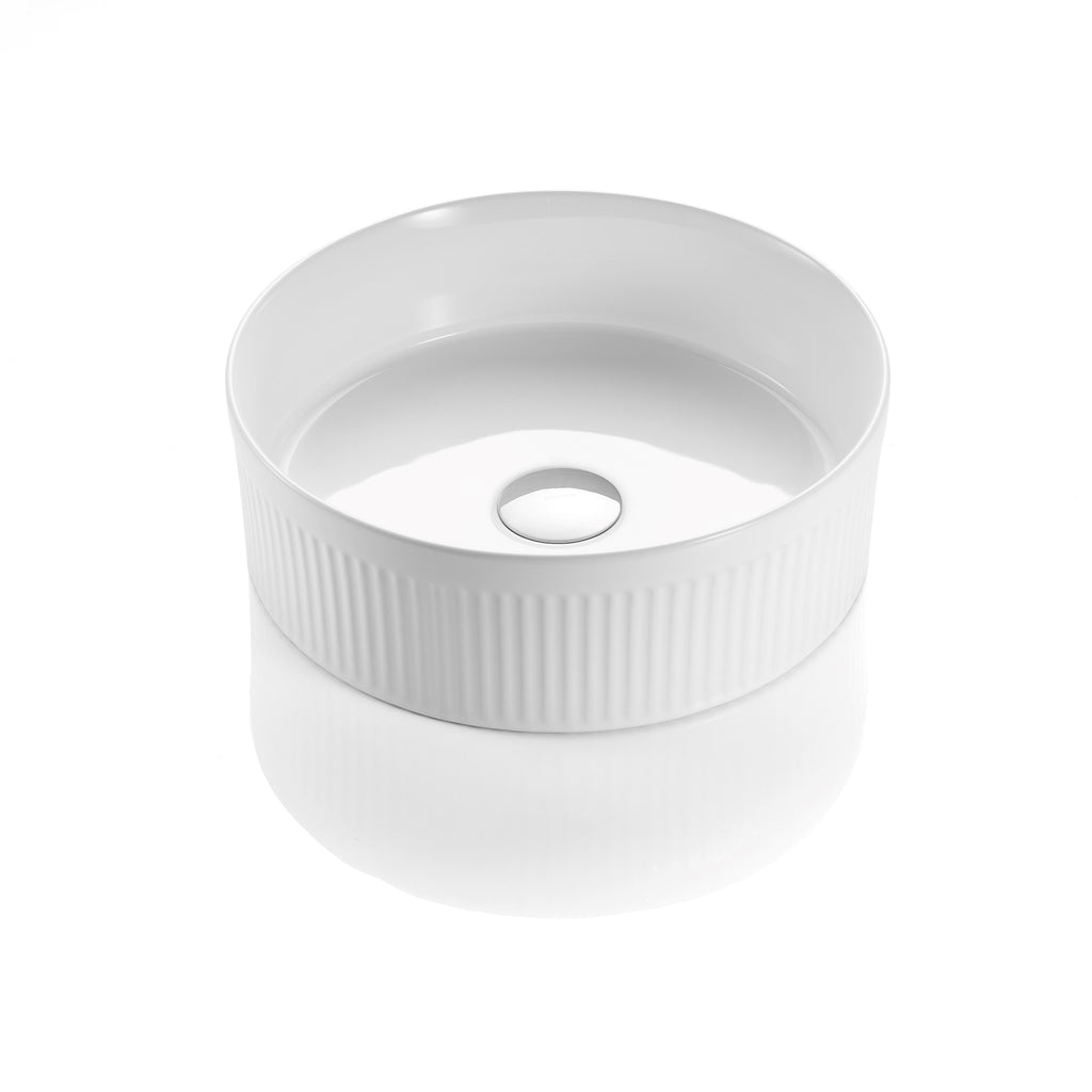 CETO CASCADE FLUTED ROUND ABOVE COUNTER BASIN GLOSS WHITE 410MM