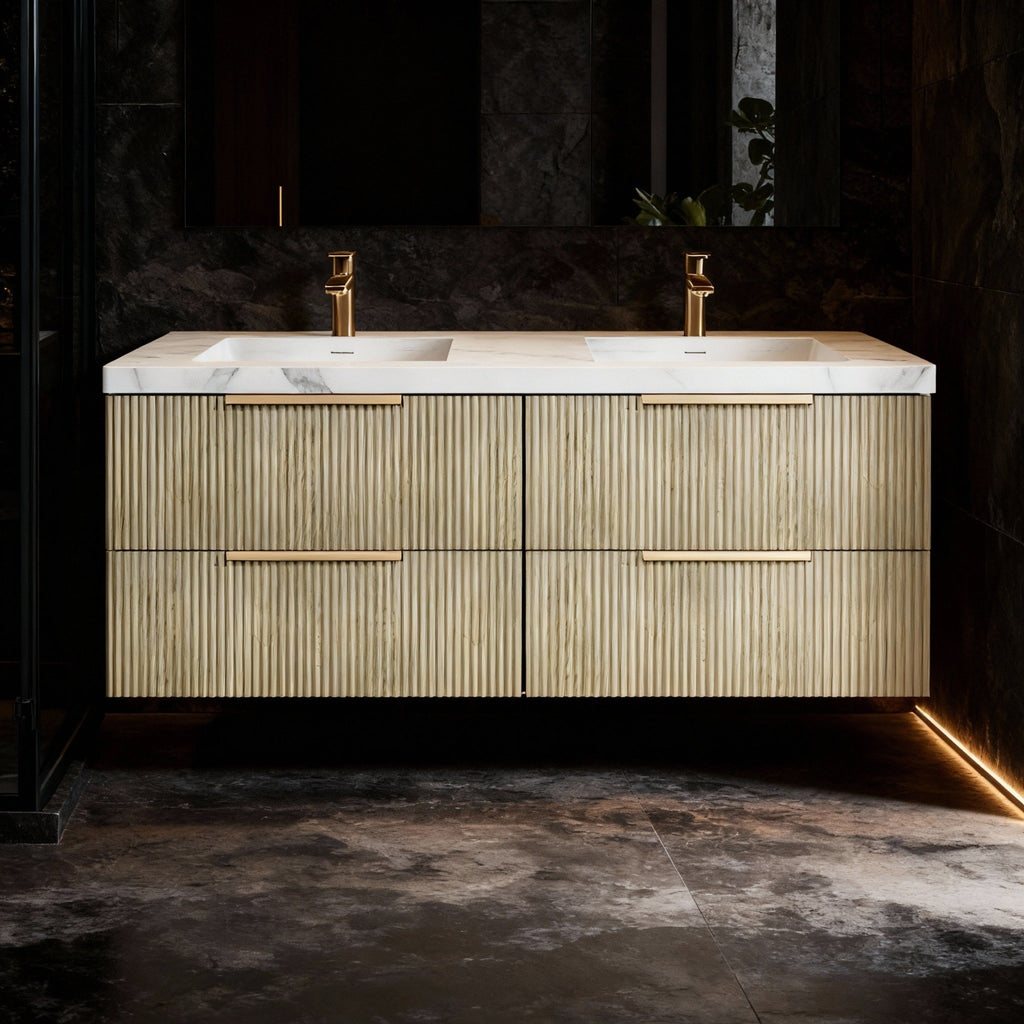 The Ceto Eden Classic Oak 1200mm Double Bowl Wall Hung Vanity blends timeless design with modern practicality. Crafted from durable PVC in a fluted Classic Oak finish, this wall-hung vanity measures 1190mm x 455mm x 520mm. Featuring soft-closing drawers, sleek bar handles, and a double bowl design, it’s ideal for contemporary bathrooms. Also available in Prime Oak and Single Bowl options. Fully assembled, with optional pop-up waste. Supported by a 10-year domestic warranty.