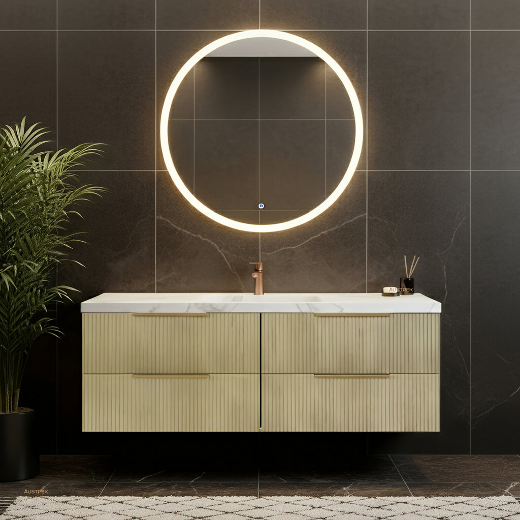 The Ceto Eden Classic Oak 1500mm Single Bowl Wall Hung Vanity brings timeless design and modern functionality together. Featuring a fluted Classic Oak finish and crafted from durable PVC, this vanity delivers both elegance and longevity. With soft-closing drawers and sleek bar handles, it offers smooth usability and style. Its wall-hung design enhances space efficiency, while the single bowl ensures practical everyday use. Also available in Prime Oak and Double Bowl options for versatile bathroom aesthetics.