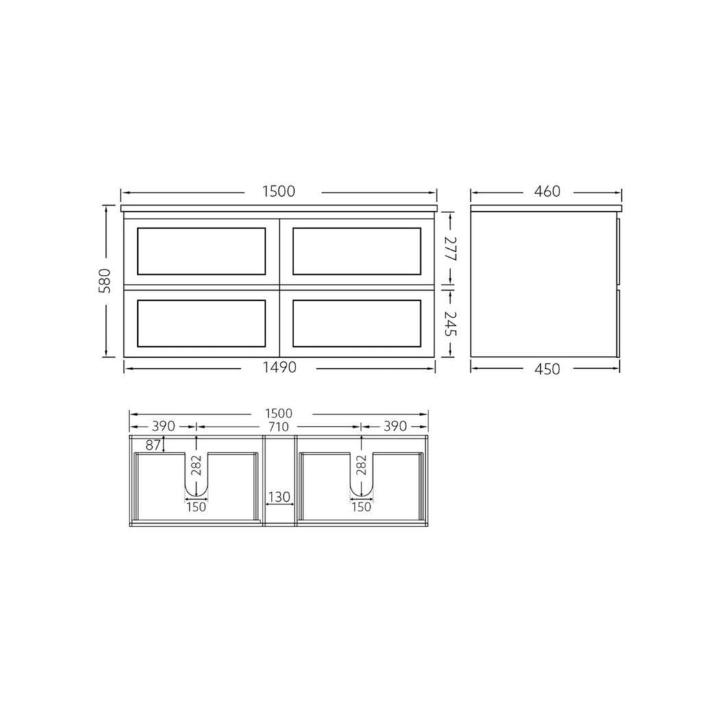 CETO FREMANTLE MATTE BLACK 1500MM SINGLE BOWL WALL HUNG VANITY