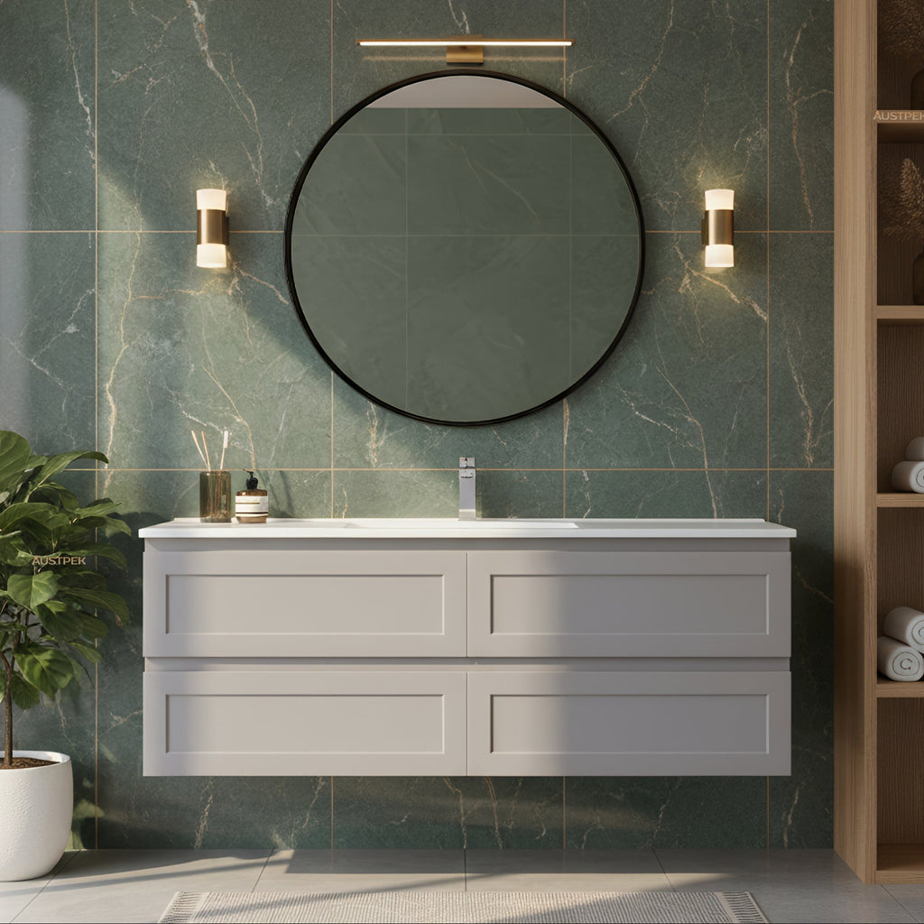 Introducing the Ceto Fremantle Matte Grey 1500mm Single Bowl Wall Hung Vanity, an epitome of modern sophistication for your bathroom oasis. Available in Matte Black and Matte White, it harmonizes with diverse aesthetics. Supported by a robust 10-year warranty covering replacement parts for the PVC cabinet and an additional 1-year coverage for the MDF cabinet, alongside a 1-year labor warranty, this vanity assures enduring quality and peace of mind. Redefine your bathroom space with this versatile and stylish piece, blending elegance and durability seamlessly.