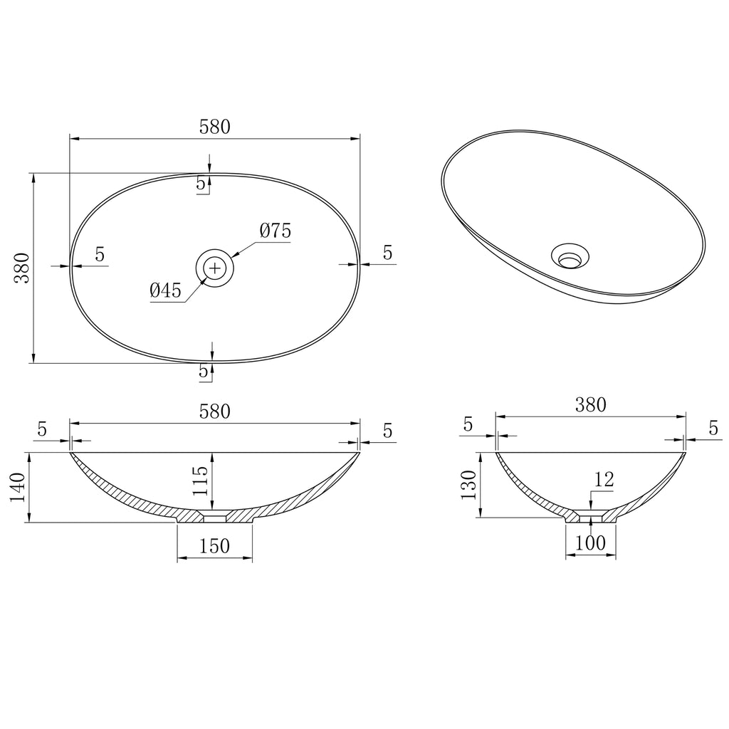 CETO KIRKBY OVAL SHAPE ABOVE COUNTER BASIN MATTE WHITE 580MM