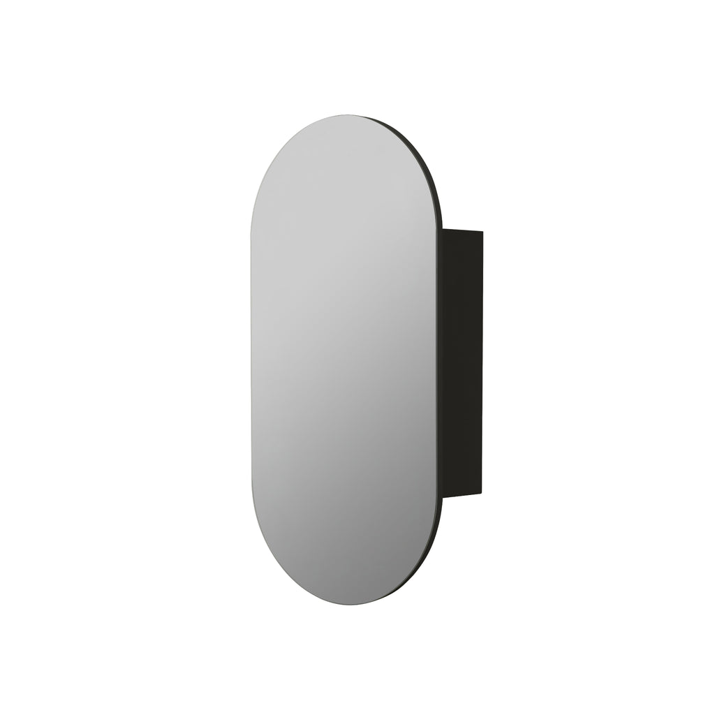 The Ceto Olivia Matte Black Mirror Shaving Cabinet 450x900mm combines modern elegance with practical design. Featuring a contemporary elongated oval shape, this cabinet offers a sleek and stylish look for any bathroom. The matte black polyurethane finish adds a touch of sophistication, while the soft-close door with full swing hinges ensures smooth operation. Designed for wall recessing, this cabinet maximizes space. Backed by a 1-year replacement warranty on parts or complete product and 1-year labour, it guarantees lasting quality and peace of mind.
