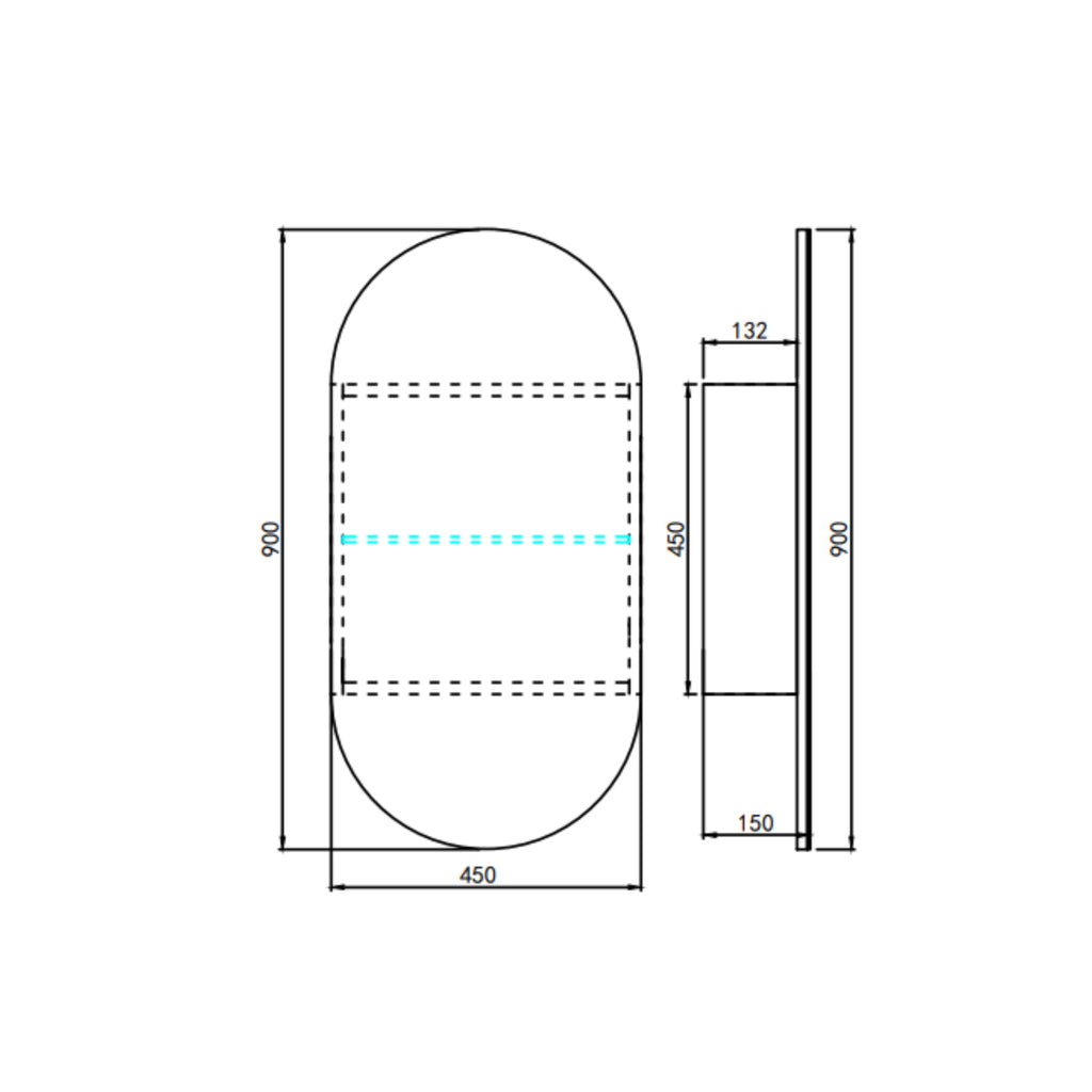 CETO OLIVIA MATTE BLACK MIRROR SHAVING CABINET 450X900MM