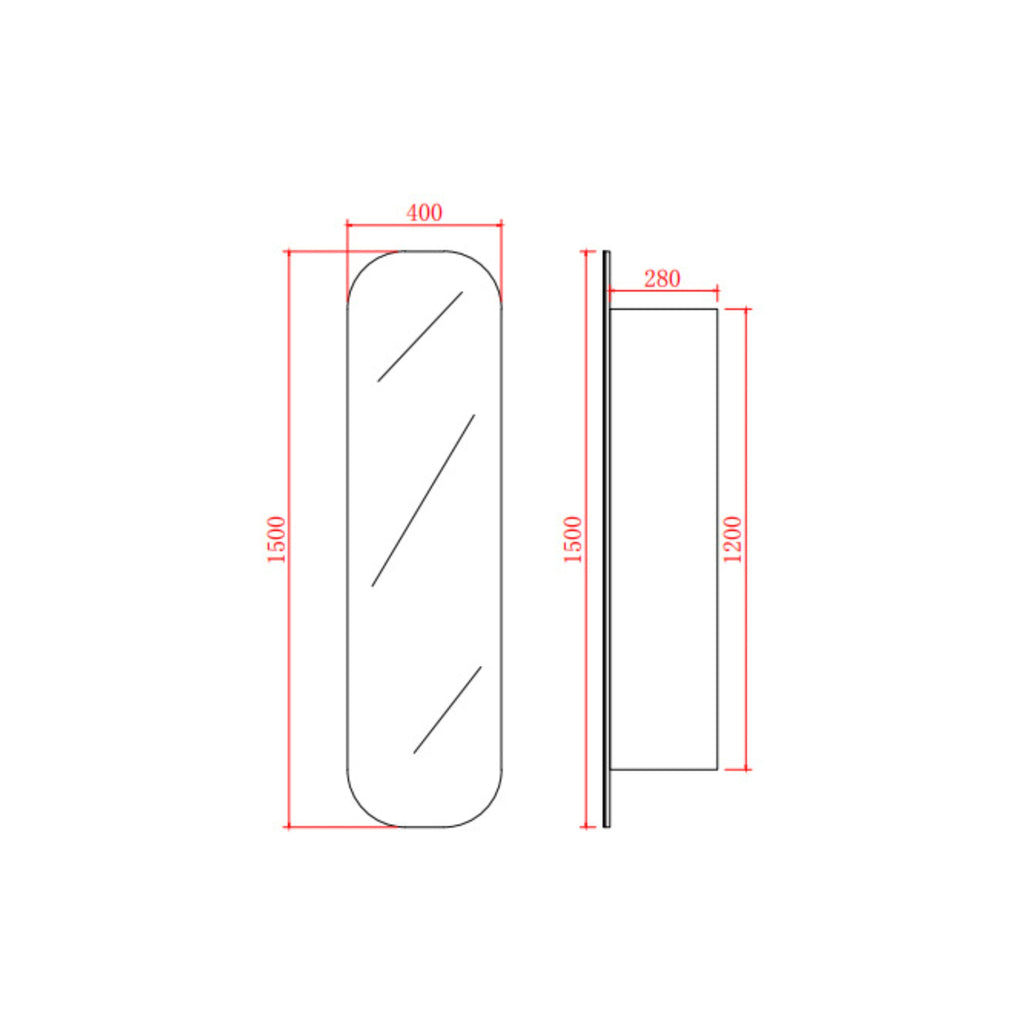 CETO OLIVIA MATTE BLACK TALL BOY MIRROR SHAVING CABINET 400X1500MM