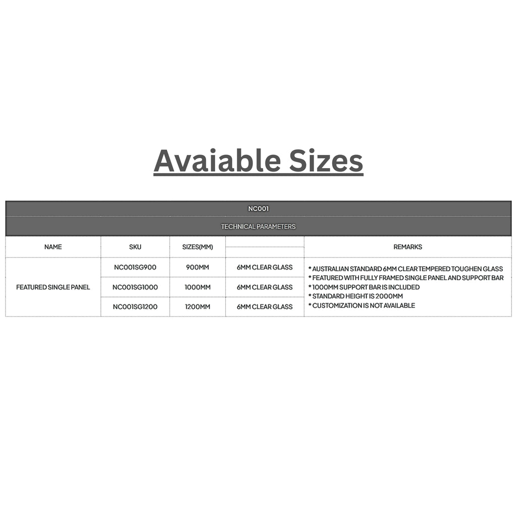 - Material: 6mm Clear Tempered Toughen Glass