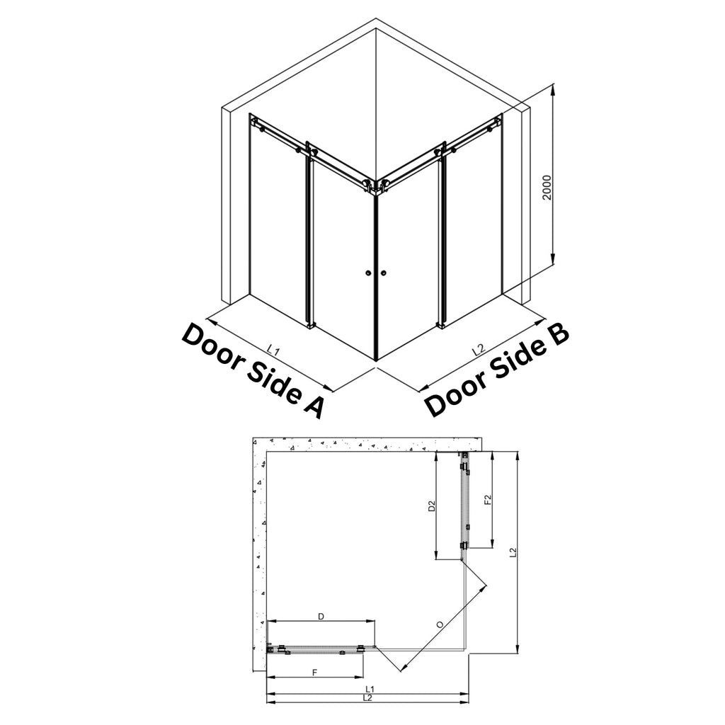- Type: Frameless Double Corner Sliding Door Shower Screen