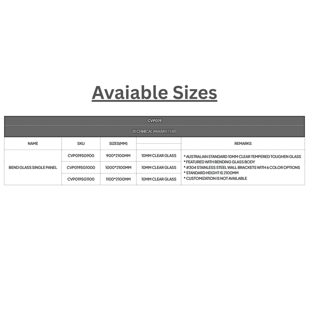 - Type: Frameless Walk in Curved Single Panel Shower Screen