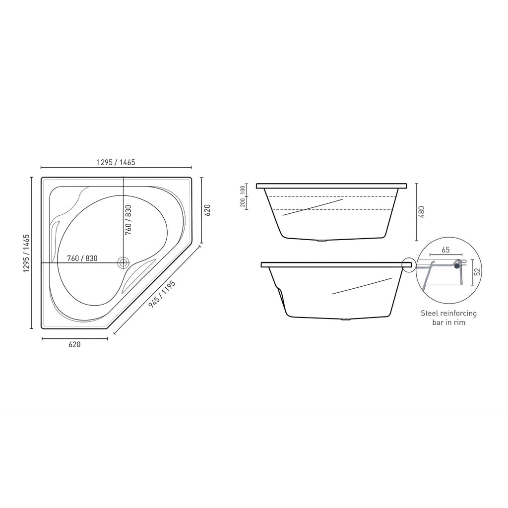 - Dimensions: 1295mm X 1295mm X 480mm | 1465mm X 1465mm X 480mm