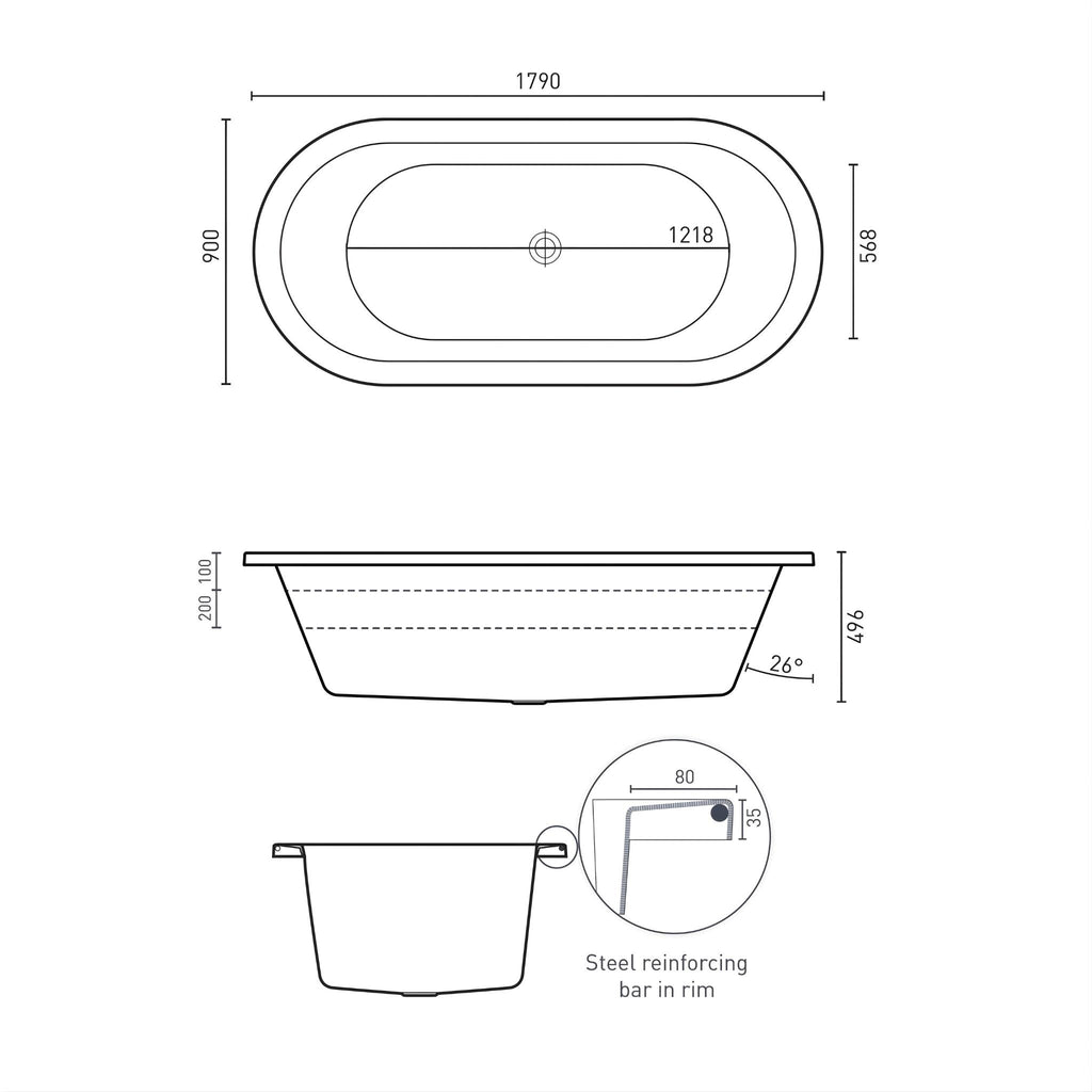 - Capacity: 188 L [200mm Below the Bath Rim]
