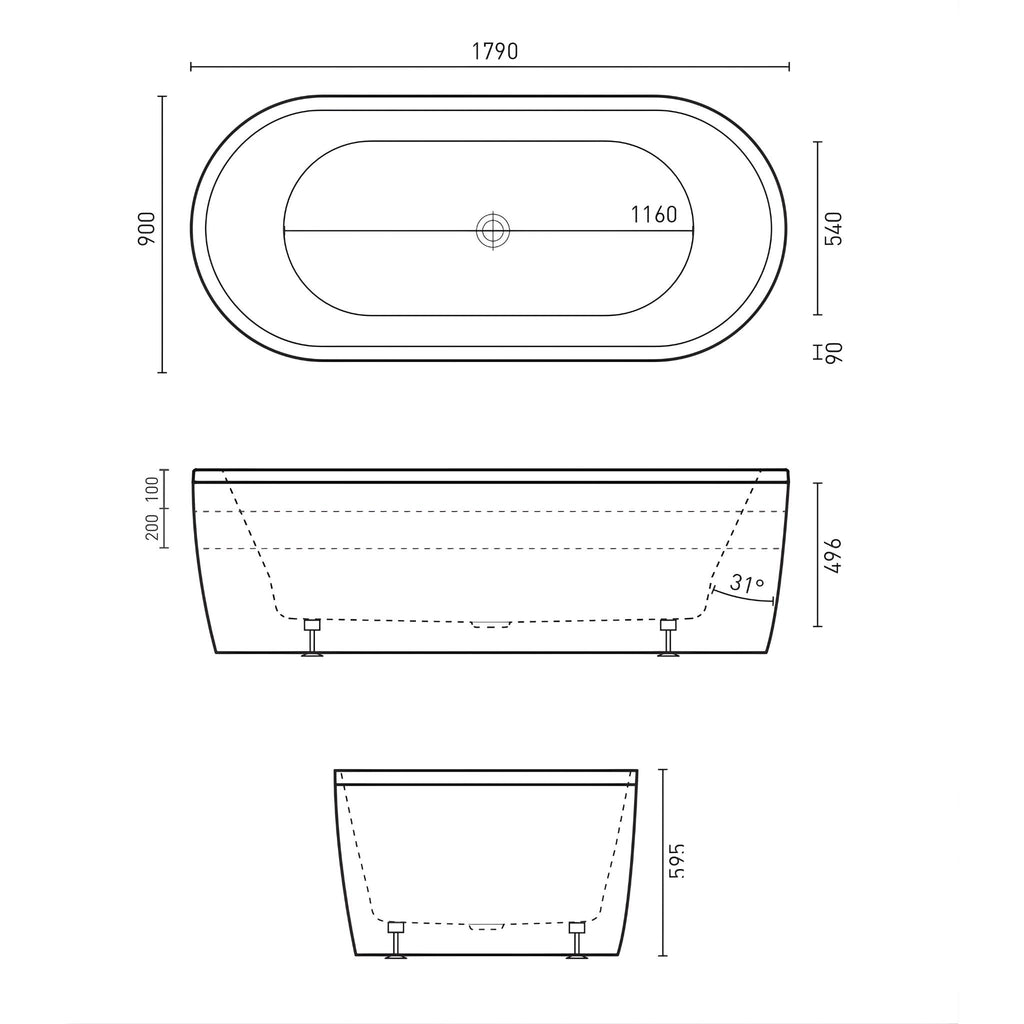 - Capacity: 190 L [200mm Below the Bath Rim]