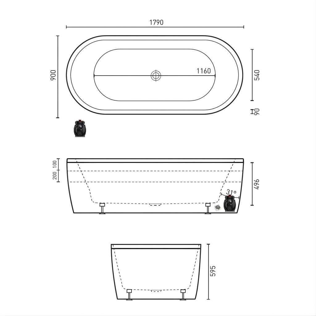 DECINA MINTORI FREESTANDING CONTOUR SPA BATH GLOSS WHITE 1790MM WITH 14-JETS