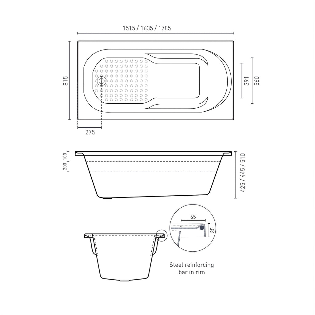 - Capacity: 124L | 159L | 194L [200mm Below The Bath Rim]